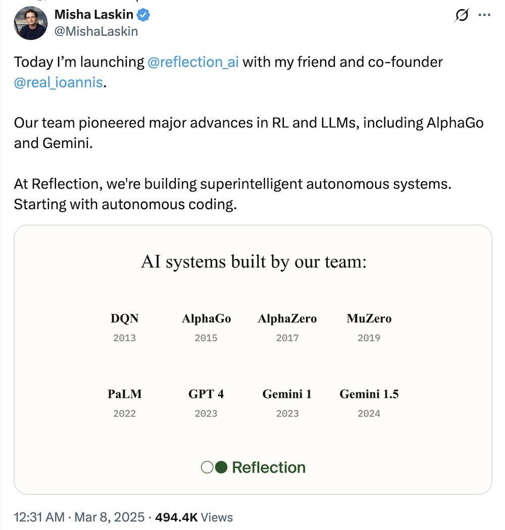 ▲图源:Reflection AI联合创始人Misha Laskin社交平台