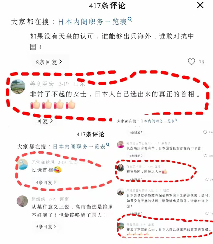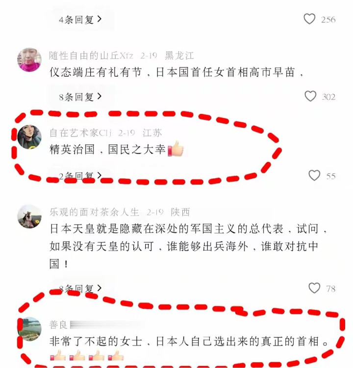 网上已经开始出现一些微妙的声音。有人阴阳怪气嘲讽对日强硬,有人美化日本“脱亚入欧”的成就,有人对高市早苗这样的政客表达崇拜。这些声音占比不大,但在敏感话题上反复出现,值得留意。