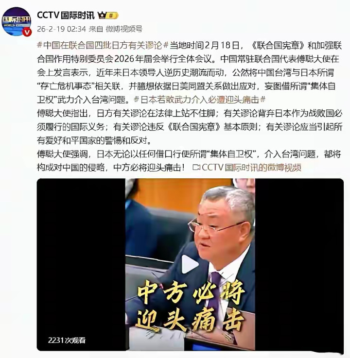 中国常驻联合国代表傅聪发言时,提到一个词——“侵略”。对象是日本。原话很硬:日本无论以任何借口行使“集体自卫权”介入台湾问题,都将构成对中国的侵略,中方必将迎头痛击。