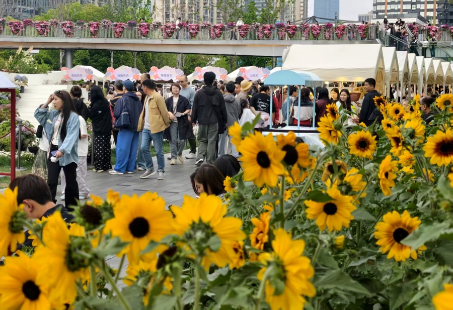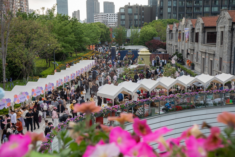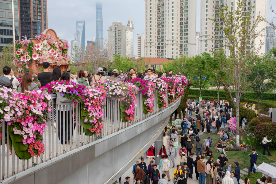 春和景明,百花簇拥整座城市。4月18日周六,上海国际花卉节启幕。恰逢晴朗周末,浦东前滩、静安苏河湾、黄浦豫园商城及古城公园等主展区纷纷迎来人流高峰。