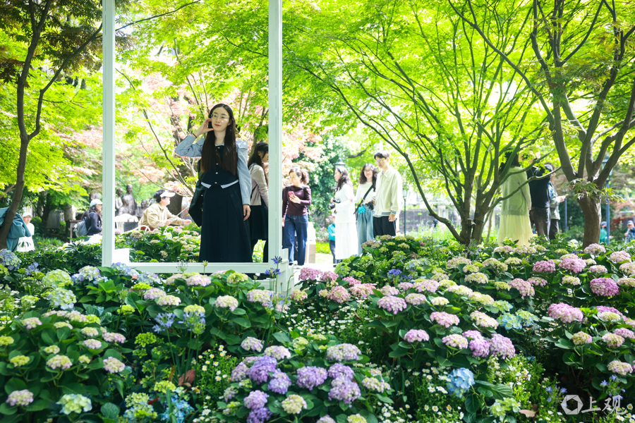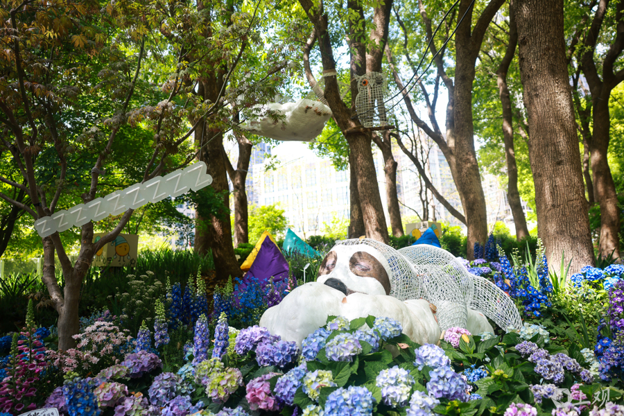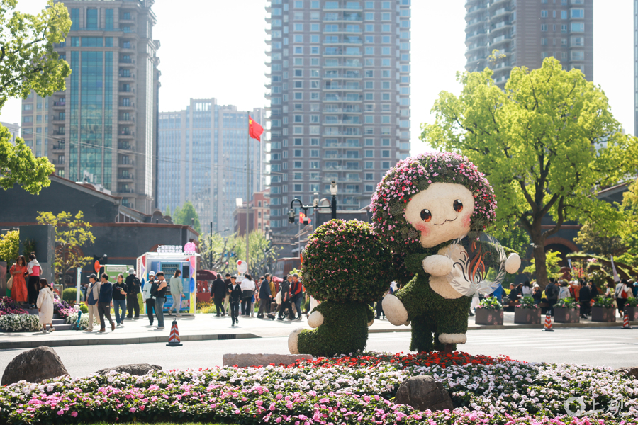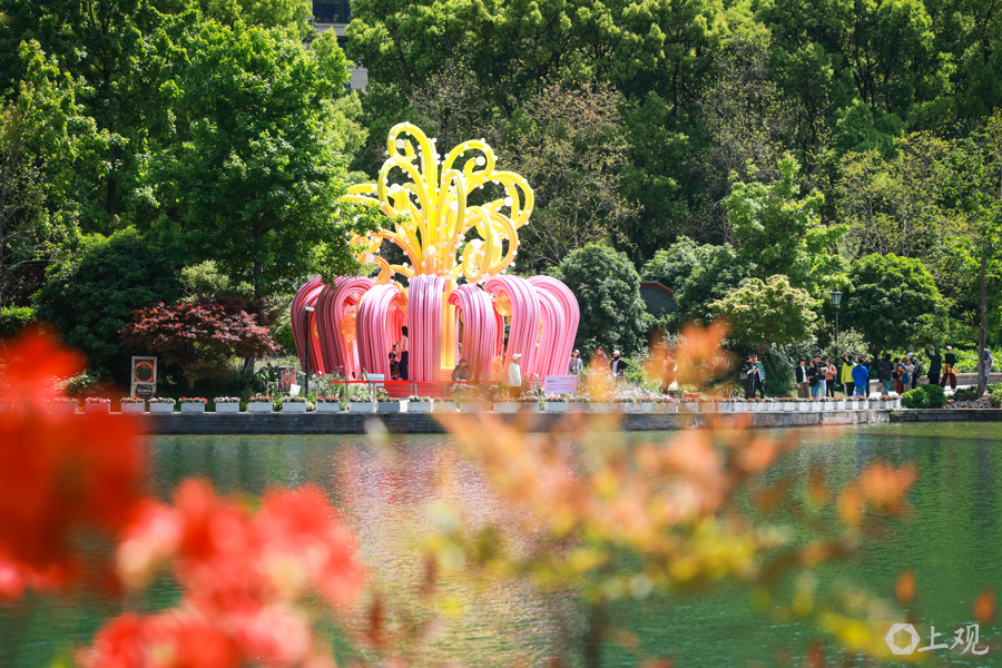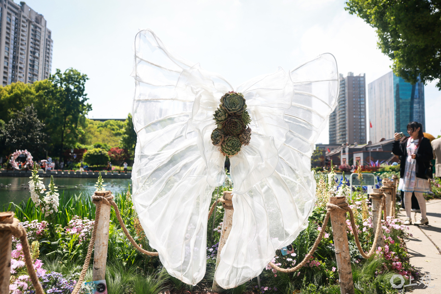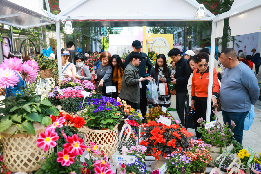 太平湖公园内近30处花艺景观与“城市花窗”相映成趣;东台里“东台好市”则汇聚了百余种时令花卉。