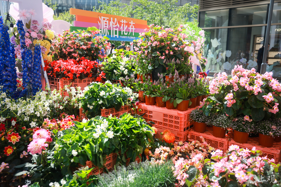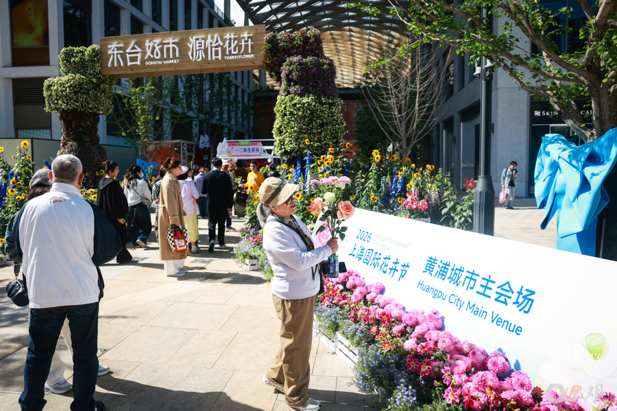 “东台好市·源怡花卉展”将百年东台路打造成了一处全长200米、面积达6500平方米的“春日花街”。